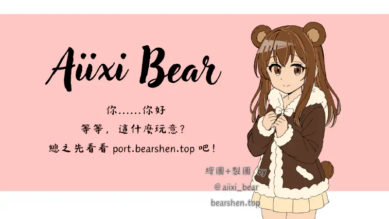 Aiixi Bear 歡迎你來到這裡 # 你可以點下面按鈕來更了解我↓ 關於Aiixi Bear 🧸 你好 歡迎來到 Aiixi Bear 的網站~看看我的自我介紹吧!什麼?看完了?那我也不知道能幹嘛,反正你就看看吧! 😂 🧸 ✨